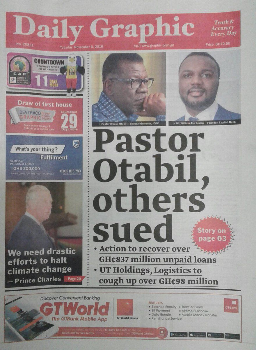 Nov 6th Front Pages: Today at the News Stand November 6, 2018 0 FacebookTwitterPinterestWhatsApp Photo Ad Click here to apply now!
